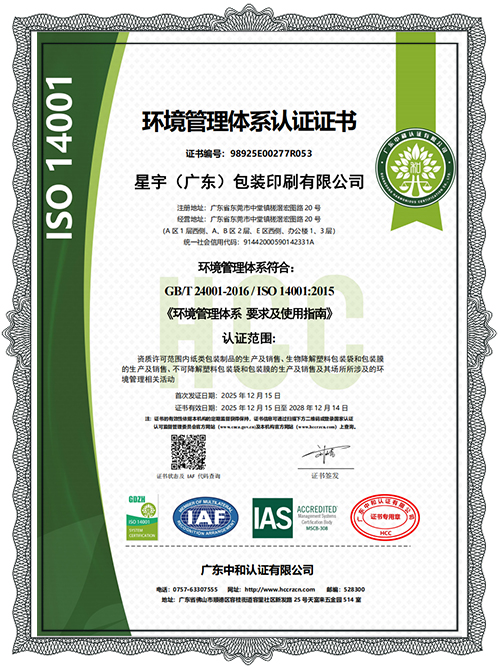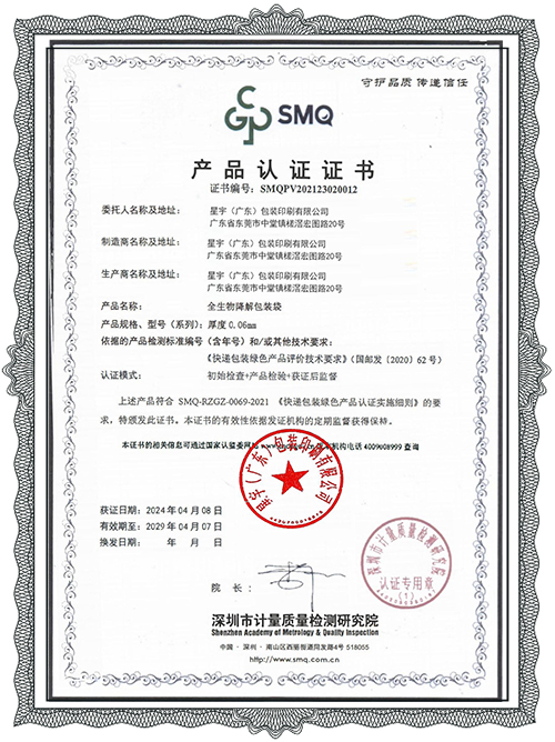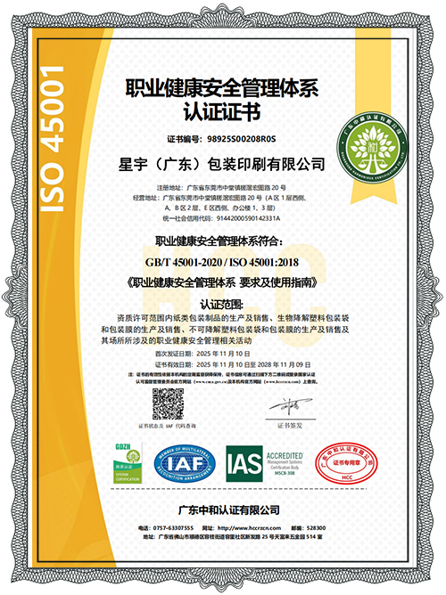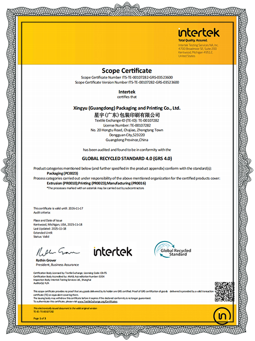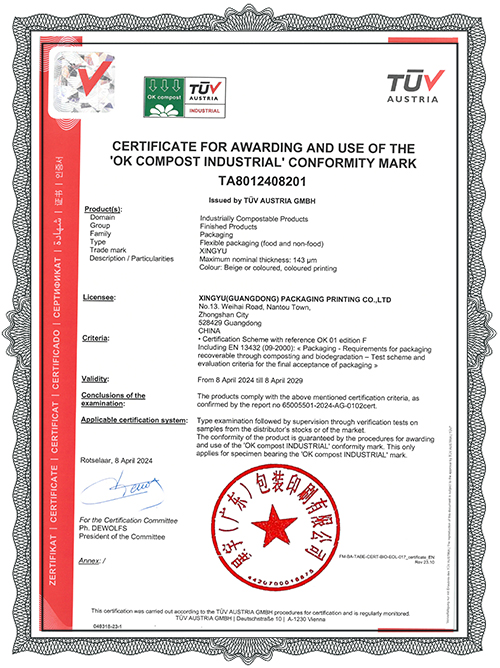 Xingyu (Guangdong) Packaging & Printing Co., Ltd. ist ein integrierter Anbieter von Verpackungslieferdiensten, der sich auf den Express-E-Commerce- und Industrieverpackungssektor konzentriert. Xingyu wurde in China als High-Tech-Unternehmen, innovative KMU und technologiebasierte KMU anerkannt. Das Unternehmen hat über 30.000 Quadratmeter Produktionsstandorte in den Provinzen Guangdong, Zhejiang und Shandong eingerichtet und bedient mehr als 500 Markenkunden, darunter DHL, China Post, KEEP, Semir, Pinduoduo, Douyin, JD.com, Alibaba, Hitachi und Jabil. Die Produkte von Xingyu decken drei Hauptkategorien von Verpackungen ab, die auf Kunststoff, abbaubaren Materialien und Papiersubstraten basieren, darunter über 200 Verpackungsartikel wie vollständig biologisch abbaubare Expressbeutel, Bekleidungstaschen, Einkaufstaschen, Anti-Fälschungsverpackungen, Polsterverpackungen, Kartons, elektronische Gepäckbriefe, Kartonversiegelungsband und Stretchfolie. Das Unternehmen hat ein solides Qualitätsrückverfolgbarkeitssystem aufgebaut, um sicherzustellen, dass Produkte nationale Standards erfüllen, und hat internationale Zertifizierungen (ISO 9001, ISO 14001) sowie Zertifizierungen für biologisch abbaubare Produkte (US BPI, OK Compost, EU EN 13432) erhalten.