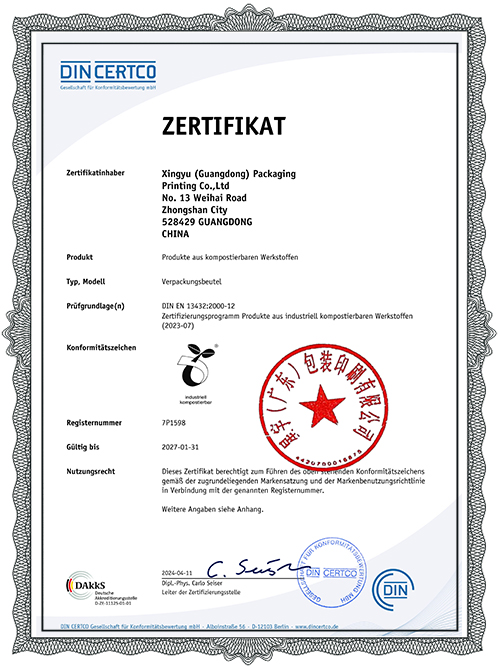 • DIN 13432 Vollständig abbaubares Zertifikat